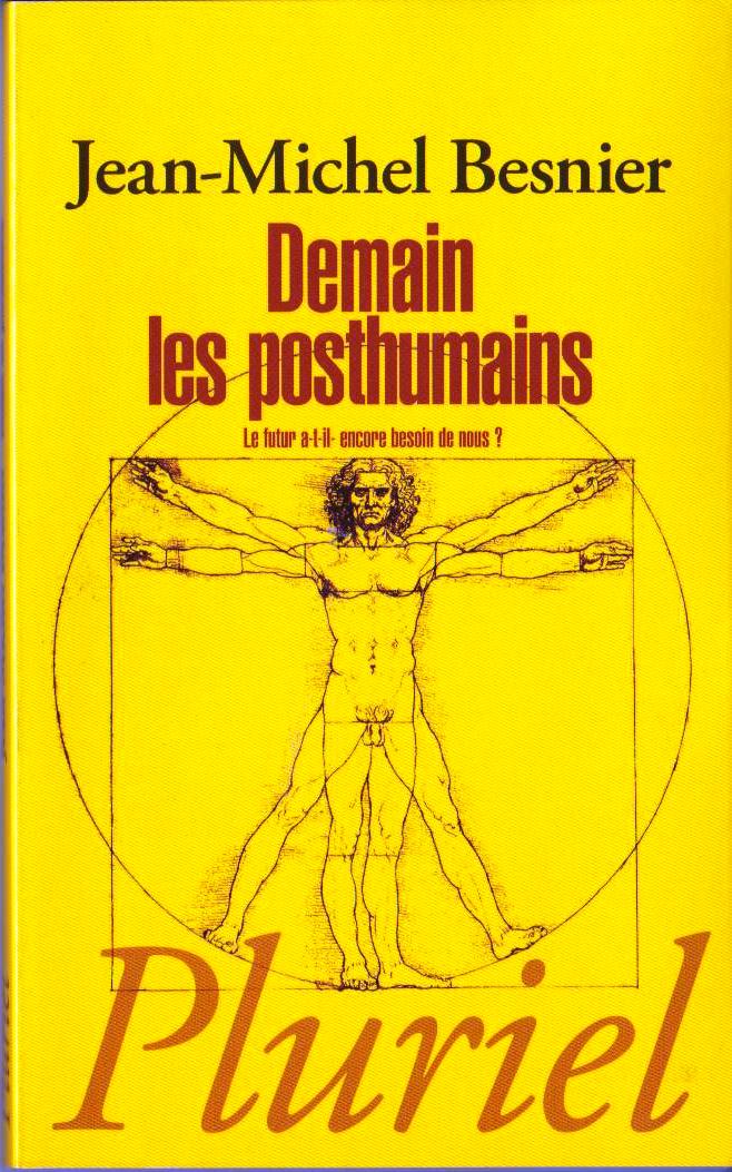 Cet ouvrage du philosophe J.M. Besnier*, vertigineux pour la pensée humaine, n’est sans doute pas pure fiction. Réédité aujourd’hui, il fait le pari de penser un avenir sans – presque sans - avenir exclusif pour l’homme. Etre un philosophe postcartésien (prônant la fin du « privilège de la conscience », dépassant ou reniant le projet d’être « maître et possesseur de la nature ») reste une audace. Se hasarder – d’interrogation en hypothèse - sur l’incertain chemin d’un humain en plein devenir n’est pas la moindre entreprise. Passer de ce qu’il était à ce qu’il sera éventuellement ne relève plus du simple passage – mécanique ? - de l’être au non-être. Au fil des pages, un drôle d’à venir s’esquisse et émerge derrière le concept de « posthumain » (Rémi Sussan). Ce néologisme nécessaire, à la croisée de plusieurs pistes révèle un présent à venir difficile à concevoir. Ces diverses pistes, que l’auteur explore, suivent la trame du rêve futuriste d’accueillir – enfin ? - comme « alter ego celui qui n’apparaît pas à la définition de l’humain ». Pistes imbriquées les unes dans les autres, logico-chronologiques.