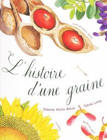 Fait dans le même esprit et par les mêmes auteures que "L’histoire d’un oeuf", ce titre (« A seed is sleepy » en anglais) attire les même remarques : un bel ouvrage, soigneusement et artistiquement peint et calligraphié, mais qui à trop "humaniser" son sujet, ici les graines, provoque un certain agacement - "Qu’est-ce qui est courageux, malin, inventif, généreux, parfois endormi et toujours secret ? Une graine !". Cet album grand format au papier glacé (l’édition originale au papier mat était plus élégante...) présente une trentaine de graines et leurs étonnantes particularités, de la minuscule graine qui donne naissance au gigantesque séquoia, à l’énorme graine du cocotier de mer qui pèse 25 kilos et se laisse dériver au gré des courants océaniques, sans oublier celle du dattier de Judée la plus ancienne à avoir germé après 2000 ans de latence. L’échelle des spécimen n’est pas indiquée, les imprécisions ne sont pas rares (certains arbres sont représentés en entier, d’autres par une seule branche). L’ouvrage, moins convaincant que son homologue n’est cependant pas dénué de qualités.