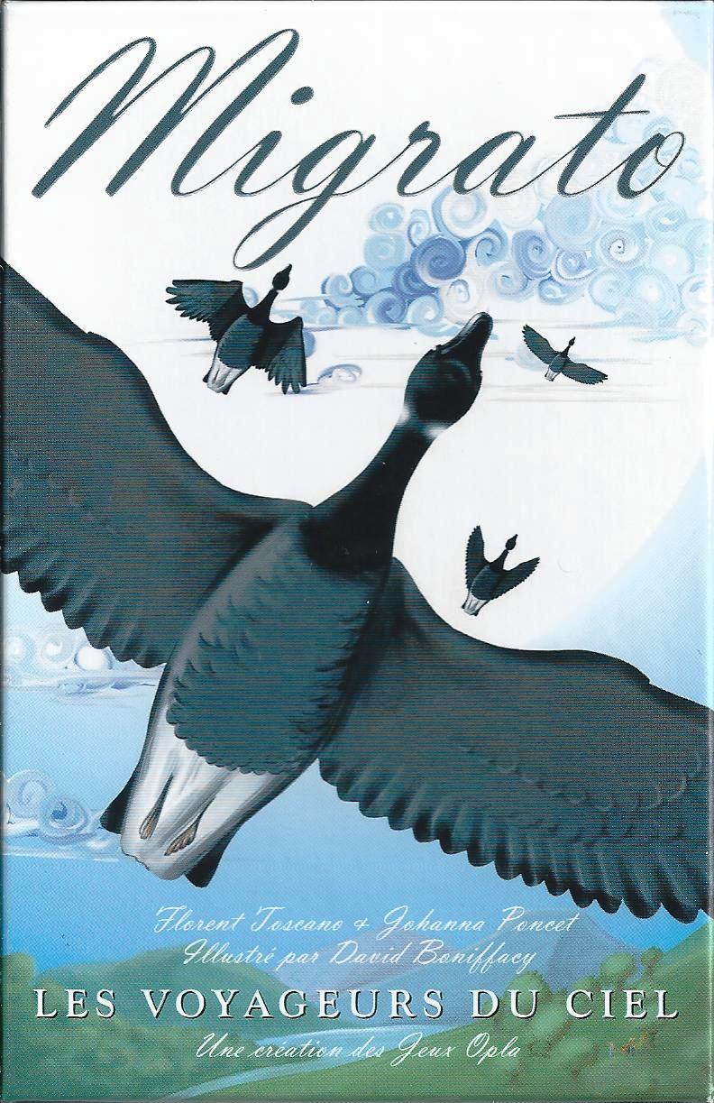 Ce jeu, éco-conçu en partenariat avec la Ligue de Protection des Oiseaux et La petite Salamandre, suit les contraintes migratoires de divers « voyageurs du ciel » : le milan noir, la bernache cravant, l’échasse blanche, le guêpier et la sarcelle. Certains volent le jour, d’autres la nuit ; certains sont la proie des chasseurs (sarcelles), d’autres heurtent des immeubles, subissent des ouragans ou la disparition de leur source de ravitaillement Autant de comportements à étudier. Ils orientent les deux joueurs dont le but est de conduire un maximum d‘oiseaux à destination. Chaque joueur choisit une action pour commencer ou compléter sa colonie. Les règles sont strictes, mais doivent être intégrées par les enfants (périodes et nombre d’oiseaux) car les vols ont un nombre différent de participants (4 ou 5 pour les bernaches, 3 ou 4 pour les milans, 3 ou 6 pour les échasses, etc.). Il oblige l’enfant à s’adapter à la vraie vie animale. Un adulte peut faciliter le démarrage de ce jeu si instructif. Ce jeu - à partir de 9 ans – invite l’observateur d’oiseaux « à jouer le premier » et incite les autres – on l’espère - à s’initier aux passages de volatiles groupés dans le ciel !