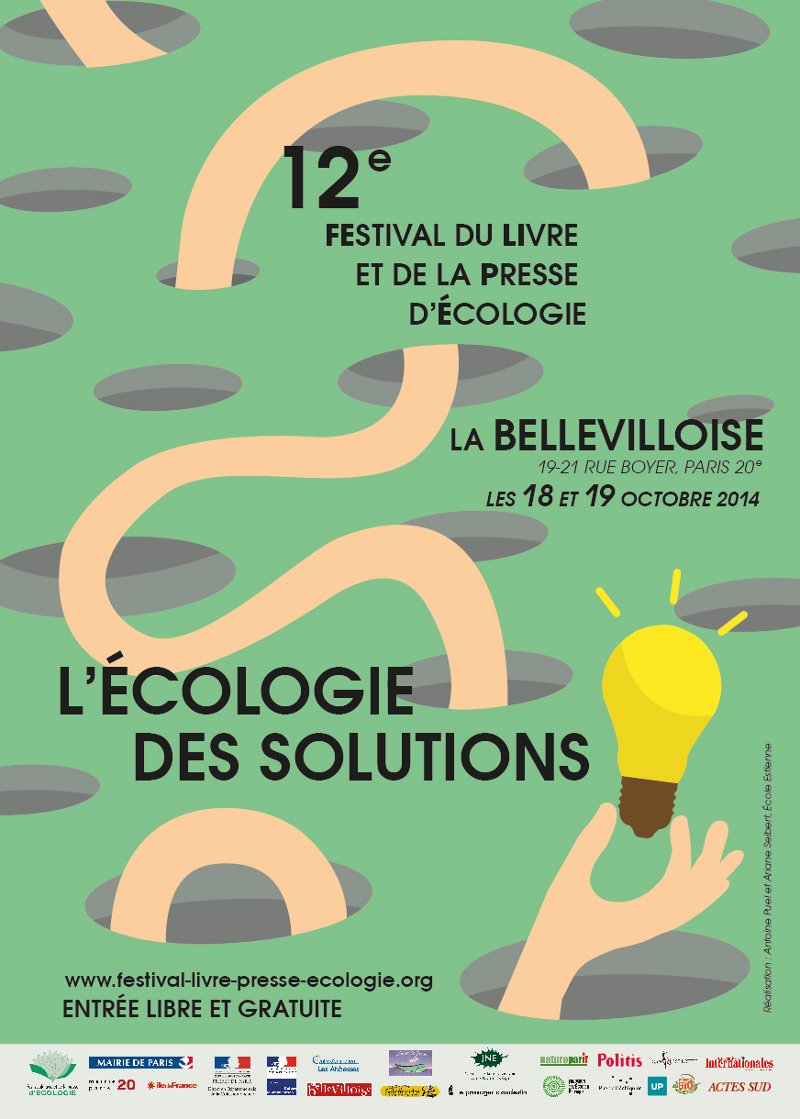 Cette année, ce sont deux étudiants de l’école Estienne, Antoine Puel et Ariane Seibert qui ont réalisé l’affiche de cette édition 2014 sur l’écologie des solutions.Tous deux terminent leur DSAA (diplôme supérieur d’arts appliqués) en Design de Stratégies et Communication. Les étudiants peuvent ensuite intégrer une agence de communication, de publicité, de design graphique, ou obtenir un poste de chef de projet dans une société de production...