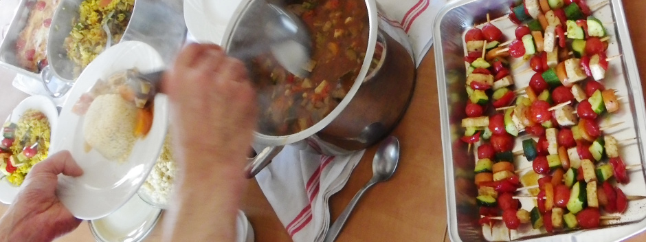 Il ne pouvait pas imaginer participer à la table ronde "de la fourche à la fourchette" sans faire une démonstration. Comment mieux découvrir les savoir-faire des cuisines végétariennes gourmandes qu’en le regardant cuisiner. Quel plaisir ensuite de pouvoir goûter !
