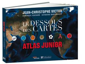 Pour ses 20 ans, « Les dessous des cartes », une émission de la chaîne de télévision Arte, a eu l’idée de concocter un Atlas junior pour rendre accessibles aux enfants toutes les grandes questions d’aujourd’hui : de la démographie aux changements climatiques, en passant par les religions et les problèmes liés à l’environnement. Les auteurs se sont dit que la meilleure façon de « préparer les dix ans à venir était de s’adresser à ceux qui ont 10 ans aujourd’hui ! ». Ils pensent que notre monde est enthousiasmant et passionnant et qu’être jeune n’est pas un obstacle pour le comprendre. Le discours des adultes est souvent négatif, découragé. Et c’est vrai que, sous bien des aspects, notre monde est dur, cruel, inégal, instable, mais c’est aussi un monde à inventer, à imaginer : solidarité, respect des autres et de la nature, et bien d’autres valeurs humaines sont des leviers de changement. Les auteurs affirment qu’il faut aborder avec les jeunes des sujets complexes et non « leur parler bébé ! », qu’il faut les aider à combattre les idées toutes faites et leur donner des clés pour comprendre le monde. Pour cela, ils ont sorti le grand jeu : une quarantaine de cartes du monde claires et vivantes, des photos bien choisies, des citations et un texte percutants !