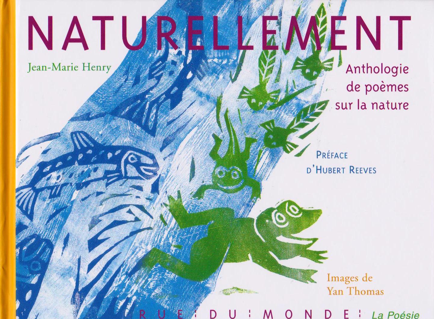 Cet anthologie Rue du monde chemine selon une triple voie : d’évidence celle de la nature qui en est le titre et le thème profond, puis celle des mots qui la disent, et enfin celle des images qui la magnifient. Cette nature émerge subrepticement d’un buisson et des prés, passe à travers les forêts et les arbres, puis visite l’eau, l’air, l’oiseau, progresse en zigzag du grillon au cheval, s’attarde sur le mammouth et les sauterelles, les animaux exotiques d’un zoo, s’arrête à Hiroshima, se rapproche des maisons avec les potagers (fenouil, haricots vert), subit la destruction des forêts « rotativées pour la pâte à papier » (Prévert).